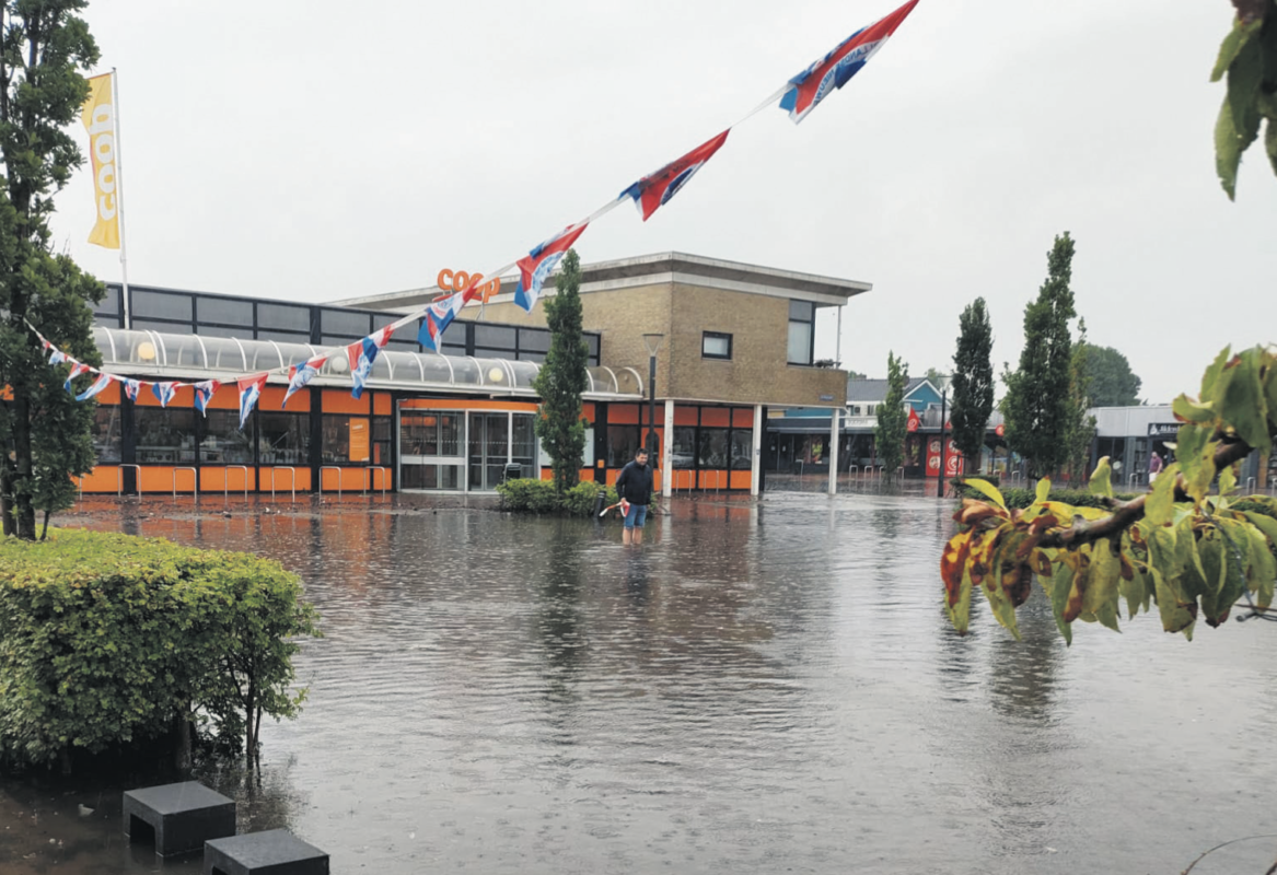 DE WESTEREEN – De wateroverlast heeft deze zomer heel wat teweeggebracht in Noordoost-Friesland. Op zondagochtend 25 juli werden mensen in verschillende dorpen opgeschrikt door een wolkbreuk. Zo kregen ook diverse inwoners van De Westereen te maken met hoog water. Bij het winkelcentrum stond het water tot aan de knieën en een deel van de bewoners van het verzorgingshuis Sikkemahûs moest zelfs geëvacueerd worden naar een hogere verdieping in het gebouw. Nu, ruim anderhalve maand later, zijn de gevolgen nog steeds merkbaar.