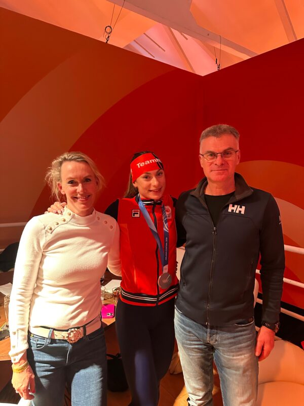 Ilja, die samen met haar man René en dochter Femke in Nij Beets woont, werkt al ruim dertig jaar bij Enitor in Buitenpost. Sinds april vorig jaar is ze werkzaam voor de internationale tak van het bedrijf. Vanwege haar baan kan Ilja niet bij elke schaatswedstrijd van haar dochter zijn. “Maar vorig jaar heb ik wel tegen mijn leidinggevende gezegd: ‘Het kan zijn dat ik in februari naar de Olympische Spelen zou willen gaan.’” Femke had zich in 2022 al geplaatst voor de Spelen in Beijing, maar vanwege de coronamaatregelen konden haar ouders daar niet bij zijn. Milaan was daarom extra bijzonder.